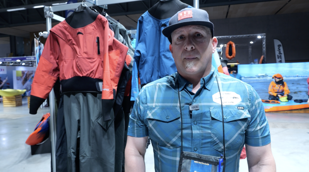 Danny at NRS presenting the 2025 Eclipse Line, a windproof, waterproof and breathability 4 layer material. Specifically seen in the Crux drysuit and Flux drytop!