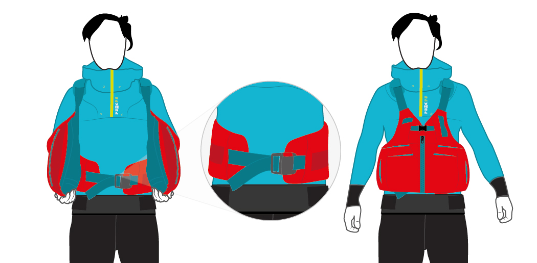 The net benefit of the Internal Secure Wrap System design means Peak PS have been able to remove the lower waist webbing adjustment strap—thus reducing the overall height of the PFD; this is ideal especially once in a seated position as the PFD front panel hardly rides up the wearer when in use.