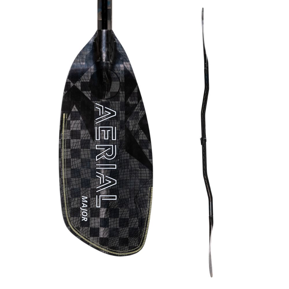 Designed for powerful strokes and precision control, the Aerial Major Carbon pairs full carbon construction with an ergonomic crank shaft for comfort and confidence in demanding conditions. Featuring Lam-Lok™ patent-pending technology, over 33 feet of aramid thread reinforce the blade edges, mechanically bonding the laminated layers for 5-10x better resistance to delamination, impact, and abrasion, resulting in a paddle built to perform at maximum power for the long haul. Sized for larger-statured paddlers or those chasing peak responsiveness, the wide, flattened foam spine blends the lift of a foil design with the durability of compression-molded carbon, while a 100% carbon blade peg insert ensures a strong, seamless connection between blade and shaft for balanced stiffness and flex. The crank shaft is engineered with bends in the right places to reduce fatigue, support natural hand alignment, and deliver superior control, complemented by a tactile grip coating that enhances hold without wearing down calluses. With the Versa-Lok™ ferrule system, 5 cm of adjustable length and infinite offset angles deliver the feel of a one-piece paddle with the versatility of a two-piece. From creeking to big-water runs, the Aerial Major Carbon delivers daring durability, dynamic performance, and all-out confidence in whitewater.