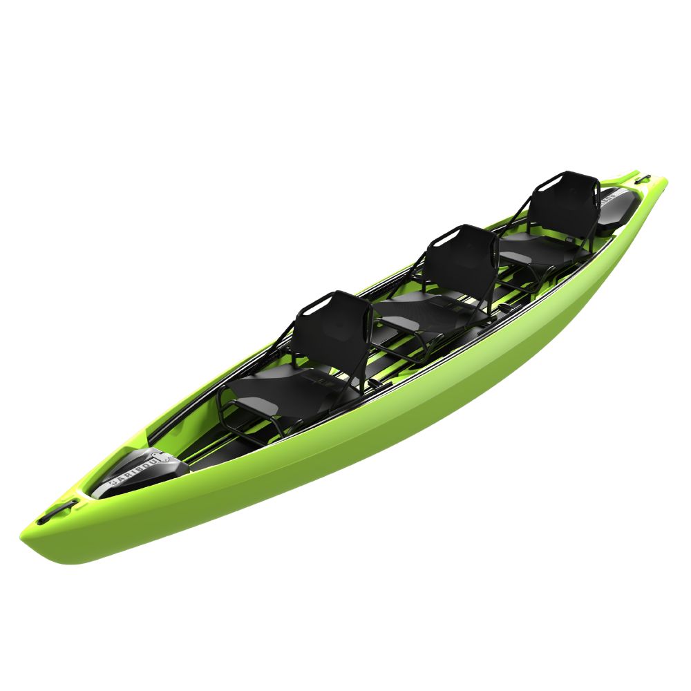 The Caribou Antia 490 is the next generation of sit-on-top kayaks, designed with a focus on ultimate stability and versatility. Its wide body and spacious deck support a wide range of uses, from family tours and long fishing trips to guiding less skilled paddlers or paddlers with disabilities. The fully adaptable deck layout allows the kayak to be configured for solo use, tandem paddling, 2-plus-2 seating, or up to 3 paddlers, depending on the crew’s needs. Carefully crafted nautical properties and outstanding buoyancy make the Antia a perfect choice that balances performance and safety. The kayak features two hatches with baggage compartments, adjustable footrests, and sliding ergonomic frame seats with folding backrests. An additional child seat with a soft foam cushion can be installed in various positions inside the kayak. Versions are available with an optional rudder or a state-of-the-art Minn Kota electric drive with GPS.