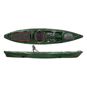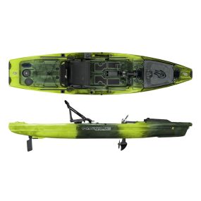 We have packed this kayak with the convenient features you love, like multiple flush mount rod holders, several rigging tracks, bottle and tackle box holders, accessory eyelets, anti-slip carpet, an 8” day hatch with storage bag, a convenient angler ruler, and two tank wells for easy storage. The HYDRYVE pedal system makes maneuvering in shallow water or around aquatic plants, an absolute breeze and by using the power of your legs, you’ll be able to go for long distances without getting tired.