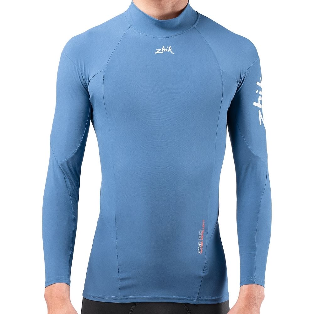 The XWR tops provide quality water repellent clothing for yachting, dinghy sailing and active sports on the water. Designed with a high stretch and super lightweight woven fabric that simply bounces water off it, helping shield you against wind and water chill, while keeping you dry. Breathable so you don’t over sweat and with UPF 50+ sun protection, these comfortable and soft tech tops are great for high-performance activities. The XWR Pro top has a performance fit with raglan cut for high activity sports. It also features a high collar for extra sun protection.