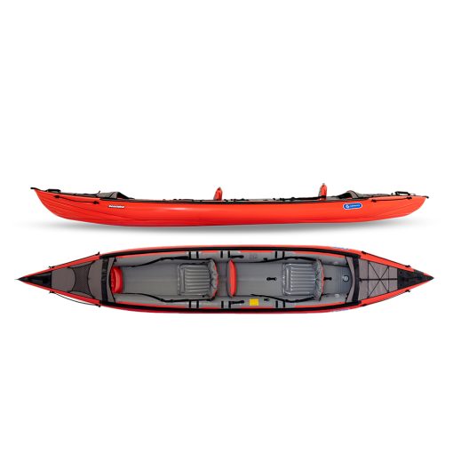 The SEASHINE is an inflatable kayak built for sea navigation, long-distance paddling on lakes, estuaries, or large rivers. It offers ample space for one, two, or three paddlers with their gear, making it ideal for multi-day trips. The kayak can be fitted with a single or double cockpit and a steering rudder. Its standout innovation is the Progressive V-shaped drop-stitch bottom, delivering improved glide and speed on calm waters while maintaining the necessary stability for rough sea conditions.