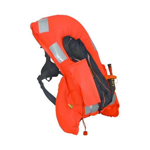 This inflatable lifejacket provides freedom of movement for canoeists, rowers, and paddlers. Its outer cover features an ergonomic shape that minimizes contact with the neck, and it’s well padded with softshell material for maximum comfort. The back strap is easily adjustable to fit individual body sizes. Additionally, the SECUFIT cover is equipped with reflective strips for enhanced visibility.