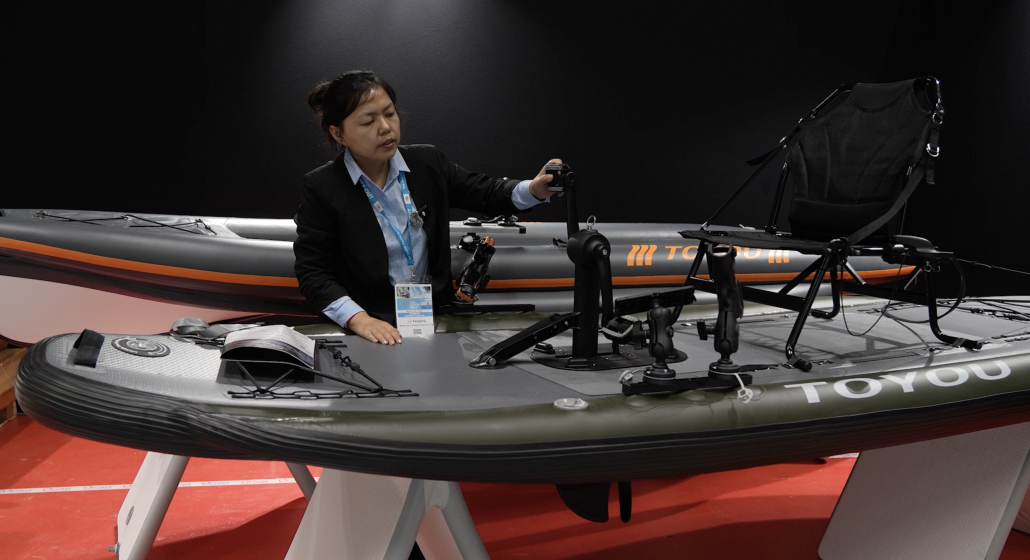 TOYOU presents their fishing kayak, featuring a removable propeller.